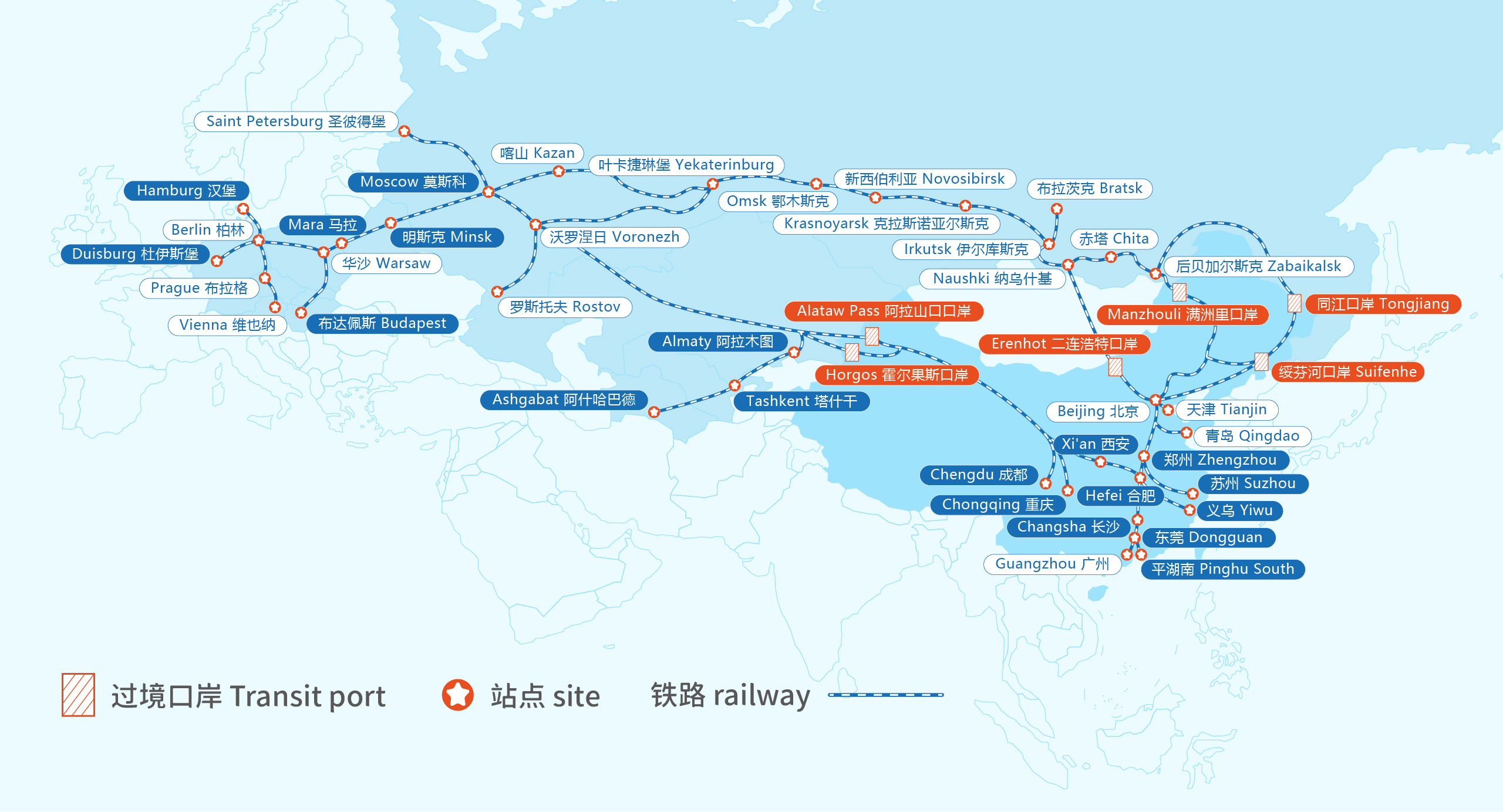 我們與中鐵集(CRCT)、俄羅斯鐵路(RZD)、俄羅斯鐵路集裝箱股份公司(Transcontainer)、哈薩克斯坦鐵路(KTZ)、德國鐵路股份公司(DB)保持緊密合作,整合國內外優質資源,開通點到點自營集裝箱班列。